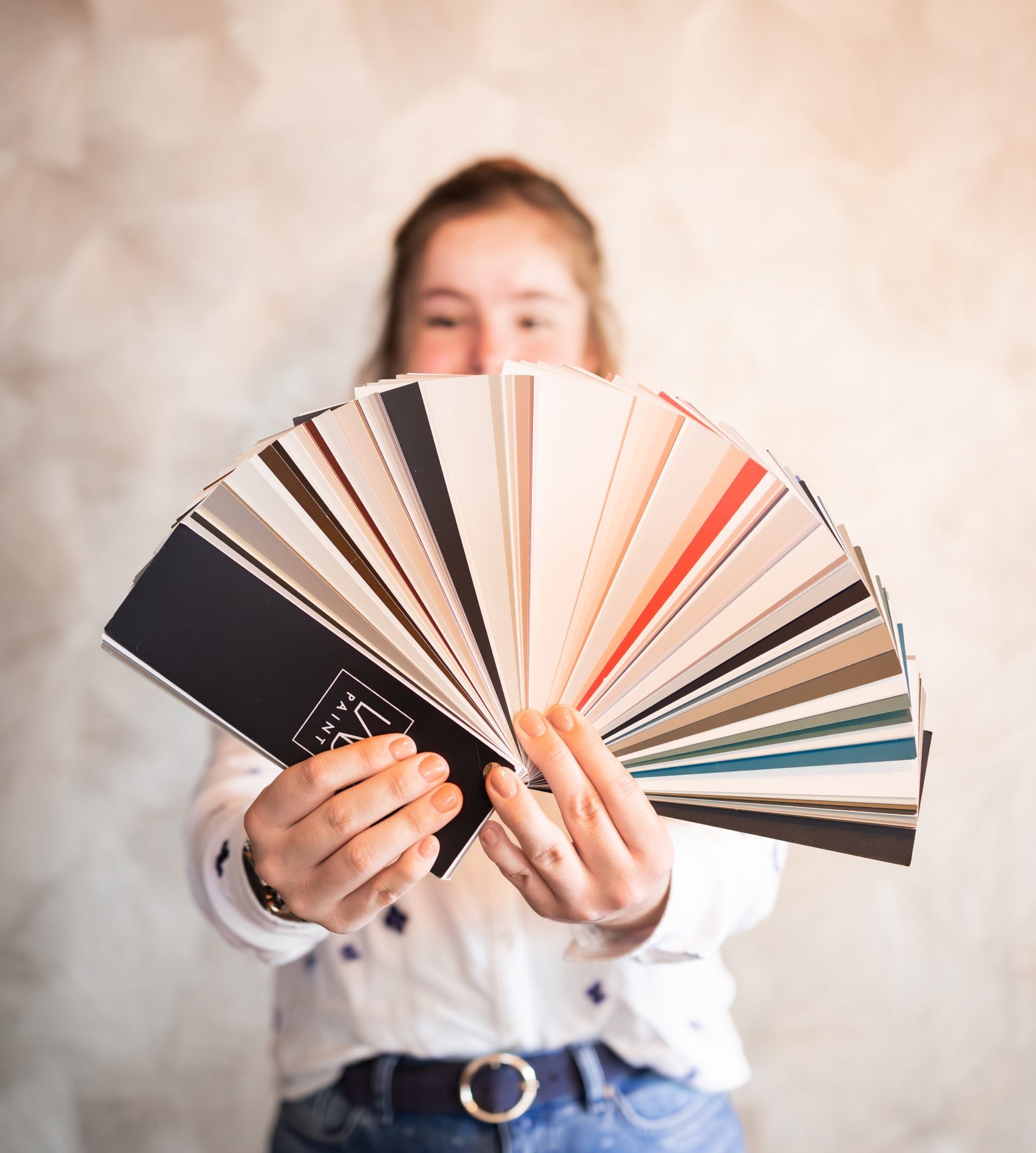 Β Ik werk met de kleur en verf stalen van LAB Paint, Little Greene, Farrow & Ball & RAL kleuren.