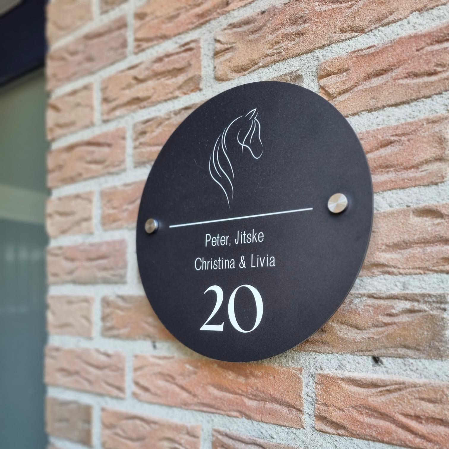 Personaliseer het ronde huisnaambord eenvoudig met je naam, huisnummer of een combinatie van beide. Zo zorg je ervoor dat bezoekers, postbezorgers en gasten jouw woning snel en moeiteloos kunnen vinden.