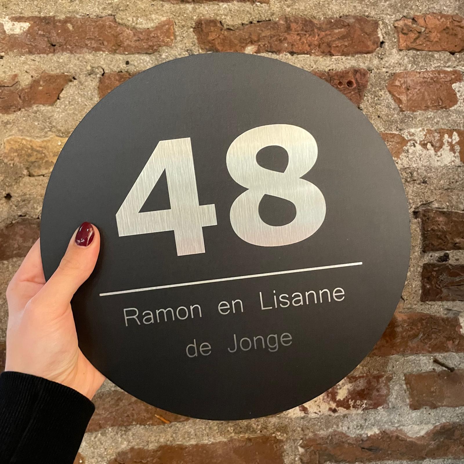 Geef je gevel een unieke en moderne uitstraling met een rond huisnaambord op aluminium. Dankzij de ronde vorm onderscheidt dit naambord zich van standaard ontwerpen en creëer je direct een stijlvolle en persoonlijke entree.